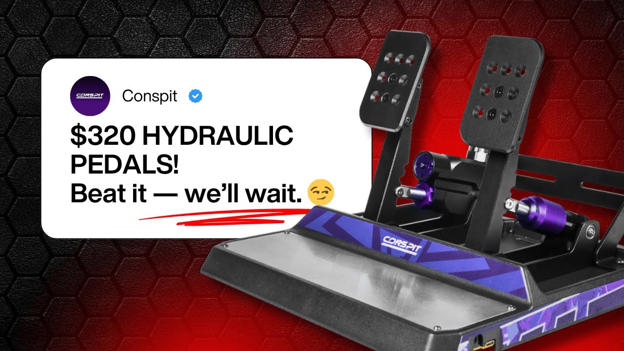 The Conspit CPP Apex is a high-precision hydraulic pedals set with adjustable travel, Hall-effect throttle & optional clutch, designed for F1, GT, rally and drift sim-racing.
