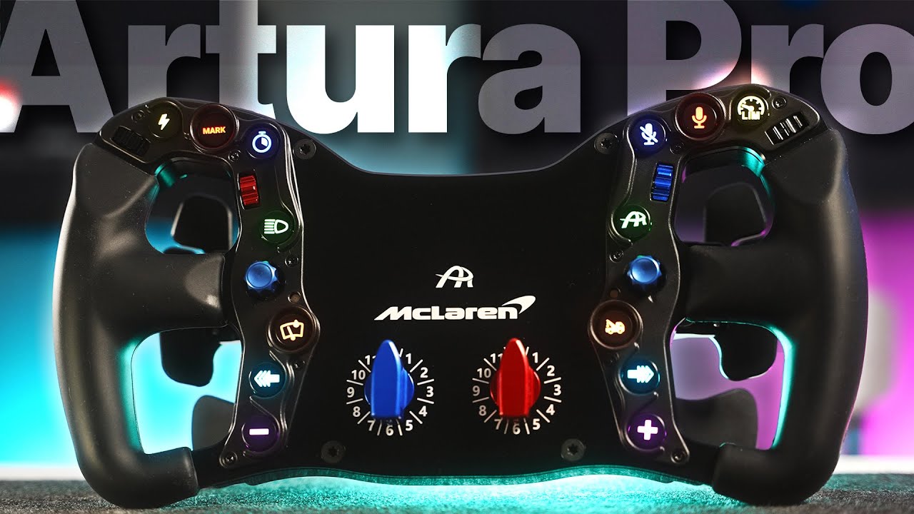 Experience the Ascher Racing Mclaren Artura Pro, a premium 300mm sim racing wheel featuring 14 buttons, aluminum face, and Alcantara grip. Designed for F1 and GT racing on PC and PlayStation. Available now at Simufy for €1129.