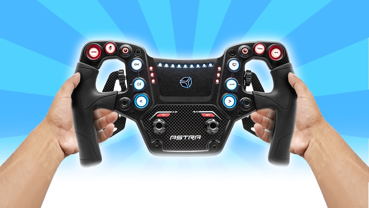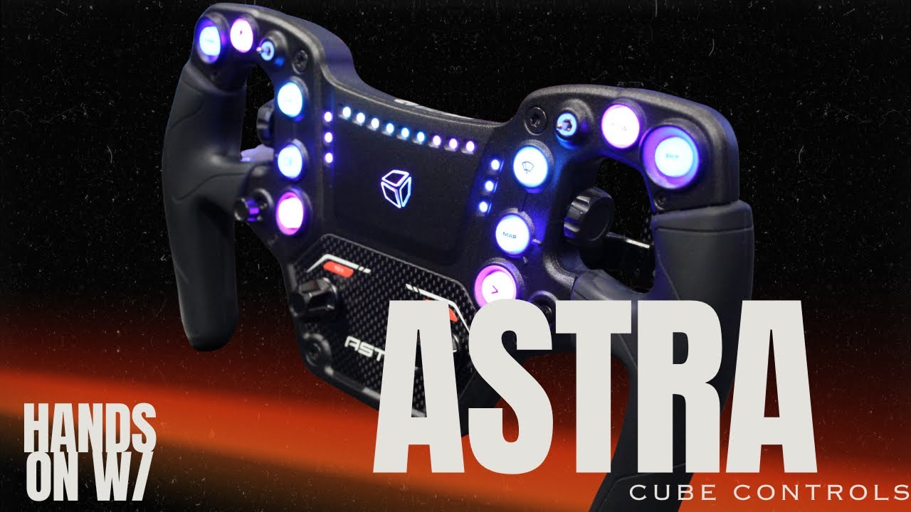 Discover the Cube Controls Astra sim racing wheel – lightweight carbon fiber design, 295mm diameter, silicone grips, and premium ergonomics for PC racers.