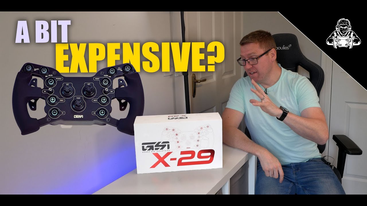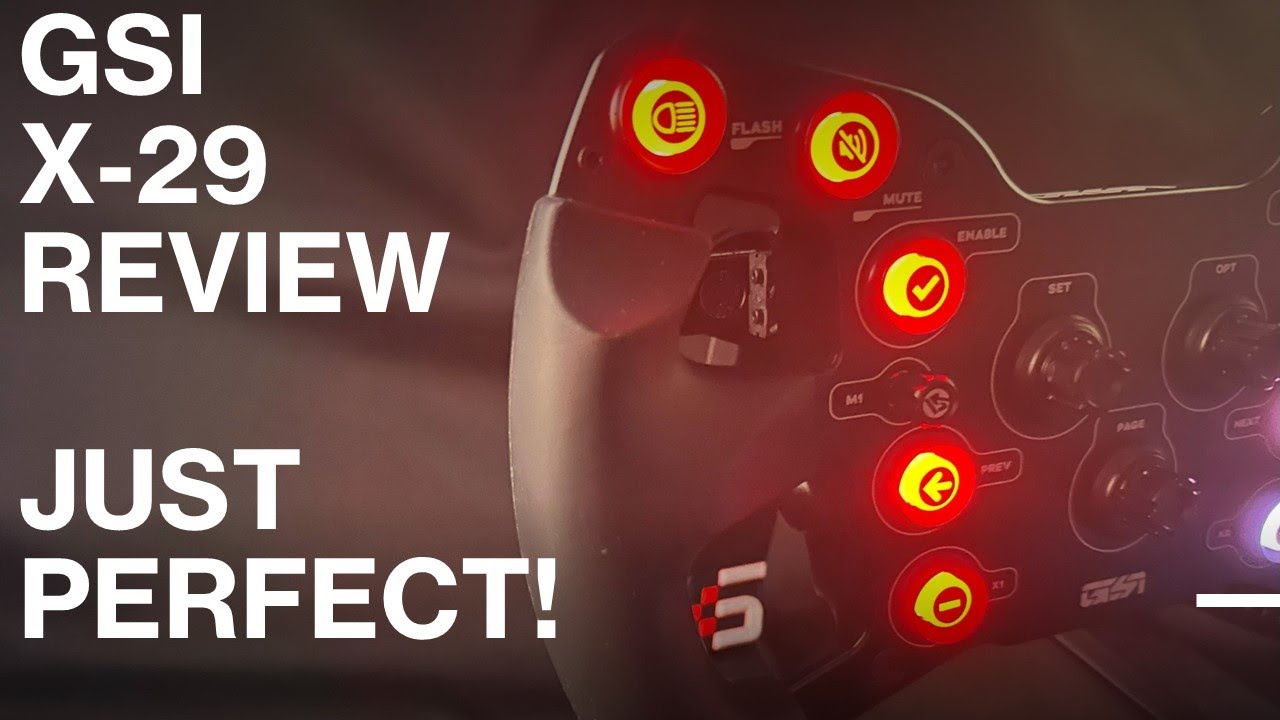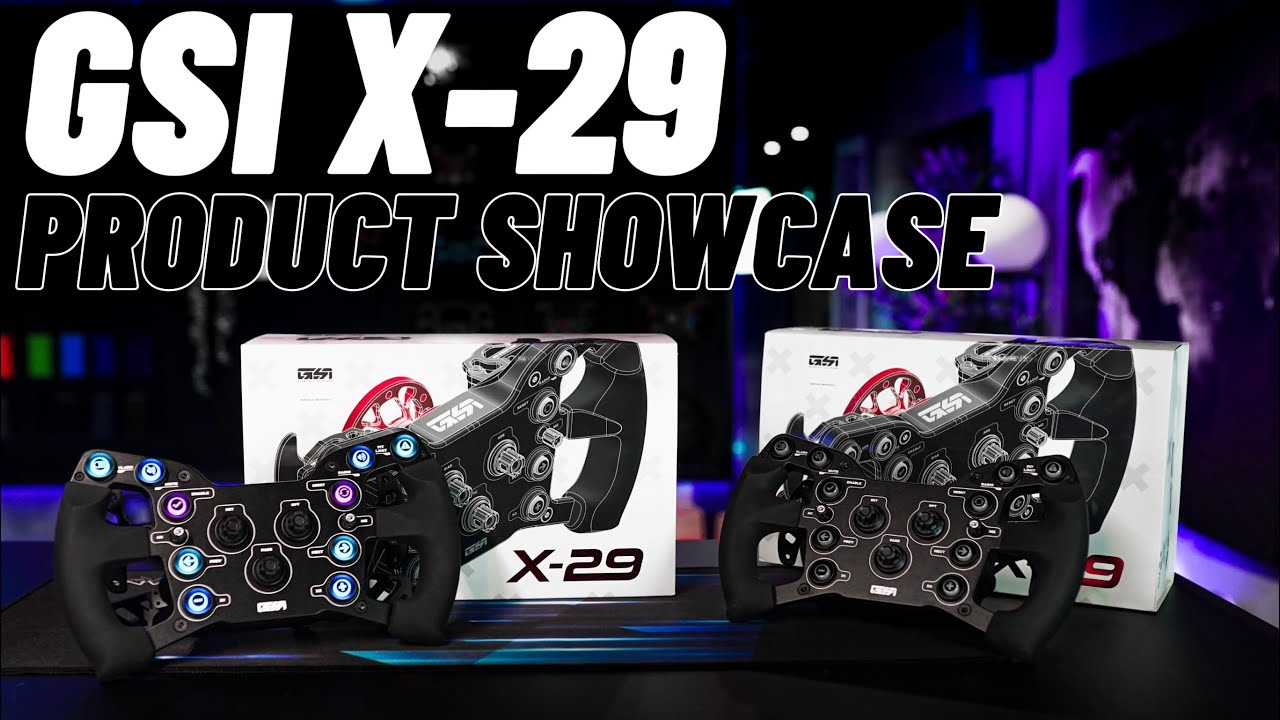 GSI X-29 by Gomez Sim Industries — lightweight PC sim racing wheel with aluminum faceplate, silicone grips, and pro-grade controls.