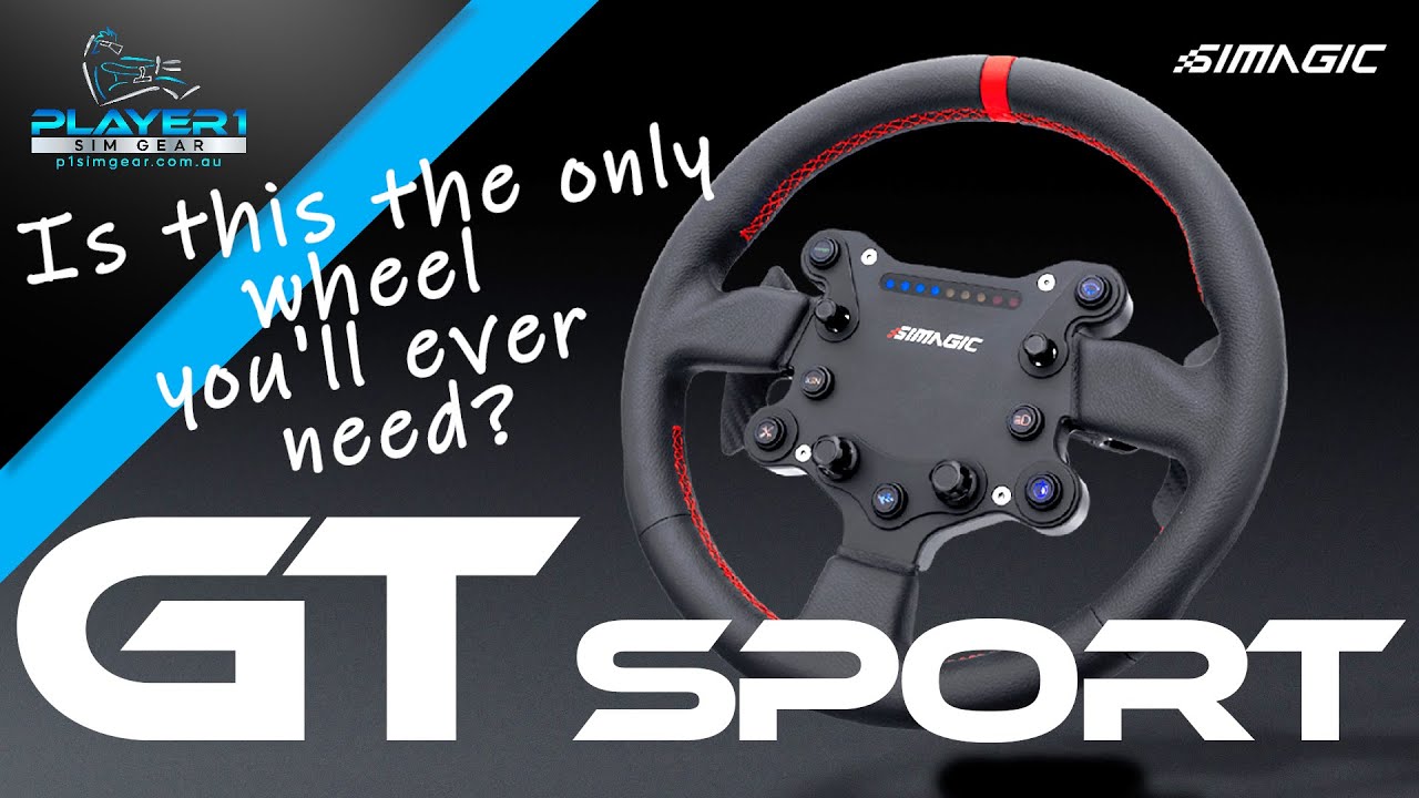 The Simagic GT Sport (GTS) is a 300mm sim racing steering wheel with leather grips, a sturdy metal faceplate, 7 buttons, 2 rotary encoders, and 2 funky switches. Designed for immersive GT, F1, rally, and drift experiences with precision and comfort.